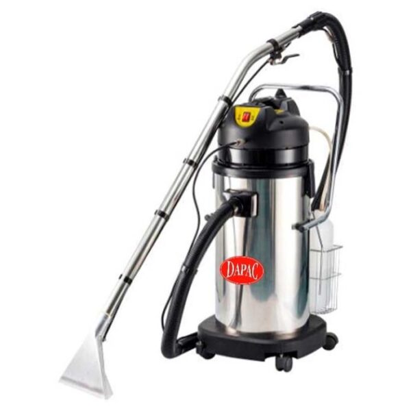 Aspiradora profesional con sistema de inyección y extracción para el lavado de tapetes y tapicería. Cuenta con un motor abierto, de fácil reparación. Consta de un doble ventilador autorefrigerante, puede recoger sólidos y líquidos. Para su óptimo uso, es necesario utilizar un producto especial, que cuide la bomba del equipo y realice una limpieza profunda. (Capacidad: 60 LT)